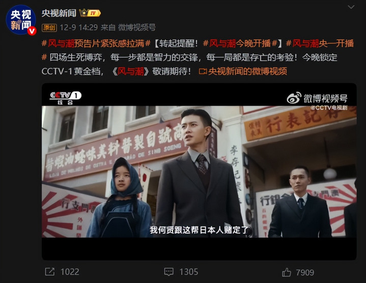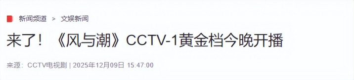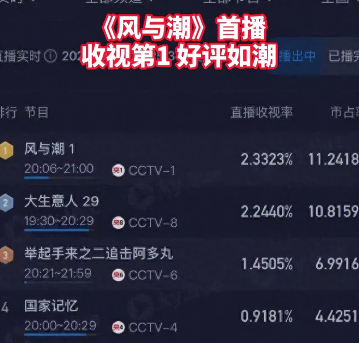 就在几天前才开始上映的《风与潮》迅速占领了收视榜的第一名。